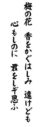 2月の和歌![]() 万葉巻20 市原王 訳:梅の花の香のように芳しい貴方を、遠くにいても心がしおれるほどに慕っている。 |